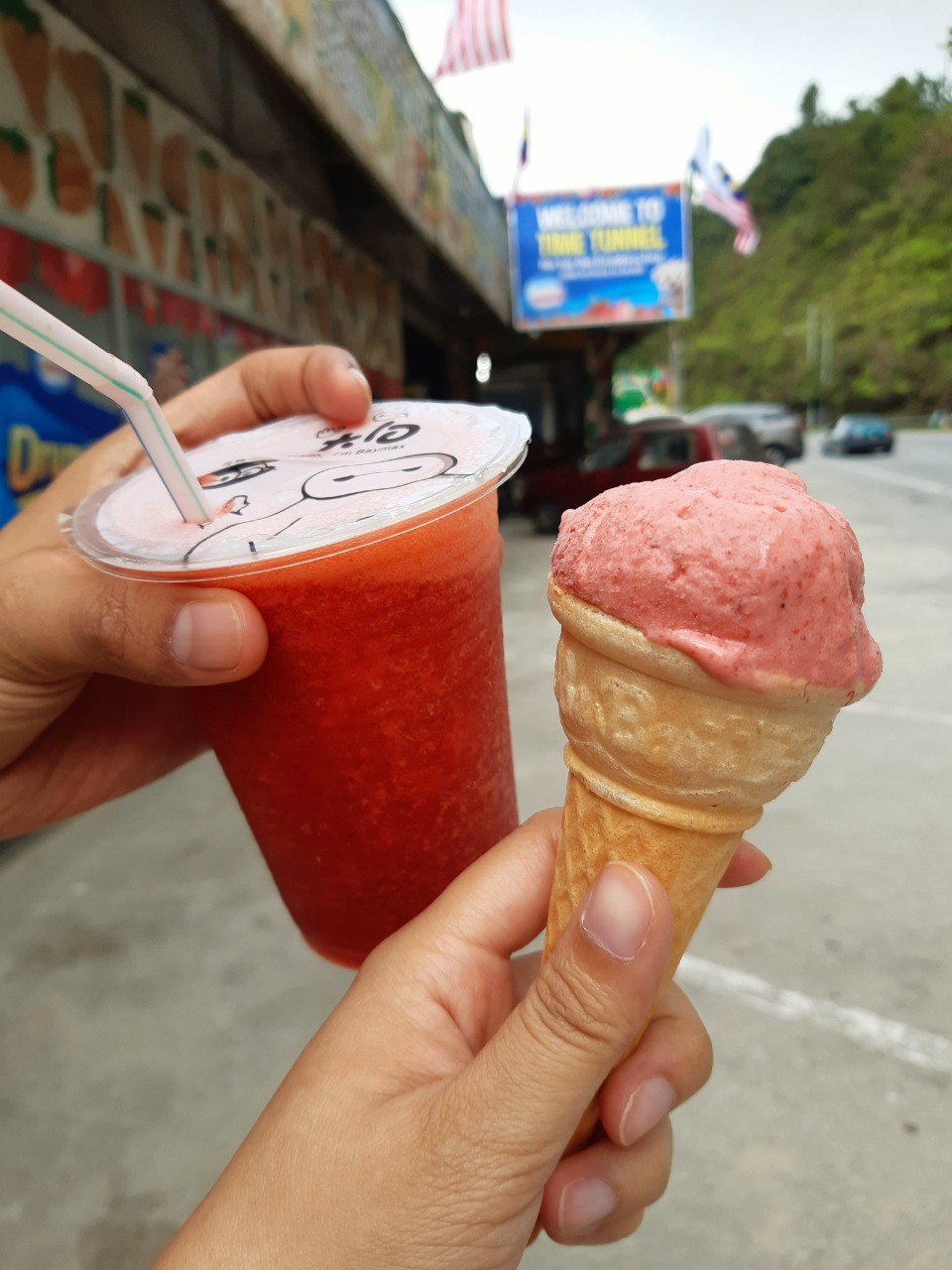 Keluar je daripada muzium tu, kami dapat tebus ice blended dan aiskrim strawberi sebab dapat beli tiket masuk muzium tu. Diorang ada sediakan kiosk, tebus kat situ lah. Hanya bayar RM 5, kami dapat dua item ini. Pandai strategi marketing depa ni. Hahaha.